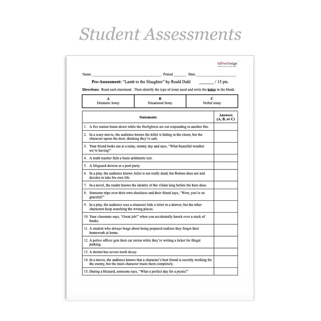 Lamb to the Slaughter Short Story Literacy Unit - 8 Days of Instruction