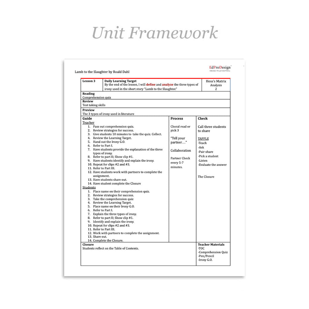 Lamb to the Slaughter Unit with Daily Lesson Plans